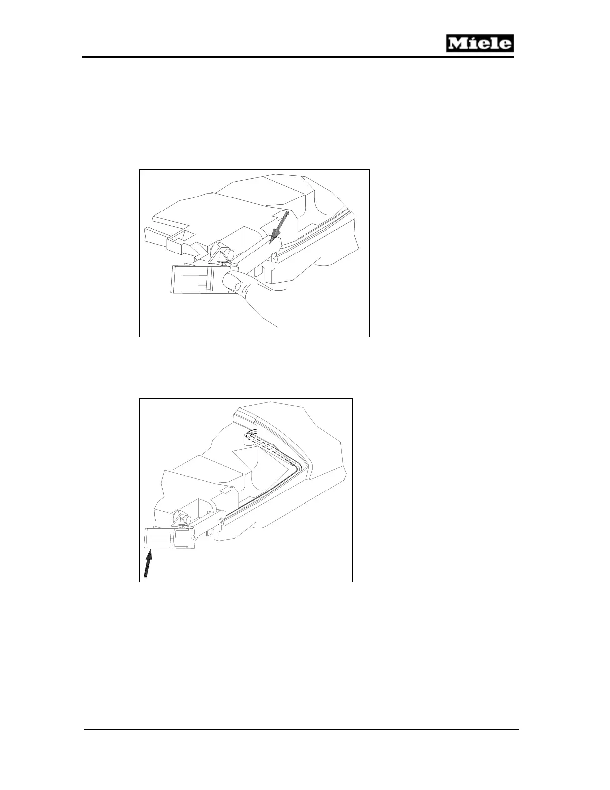 6. Turn the hinge upwards and install the cover on the cord guide. See arrow,