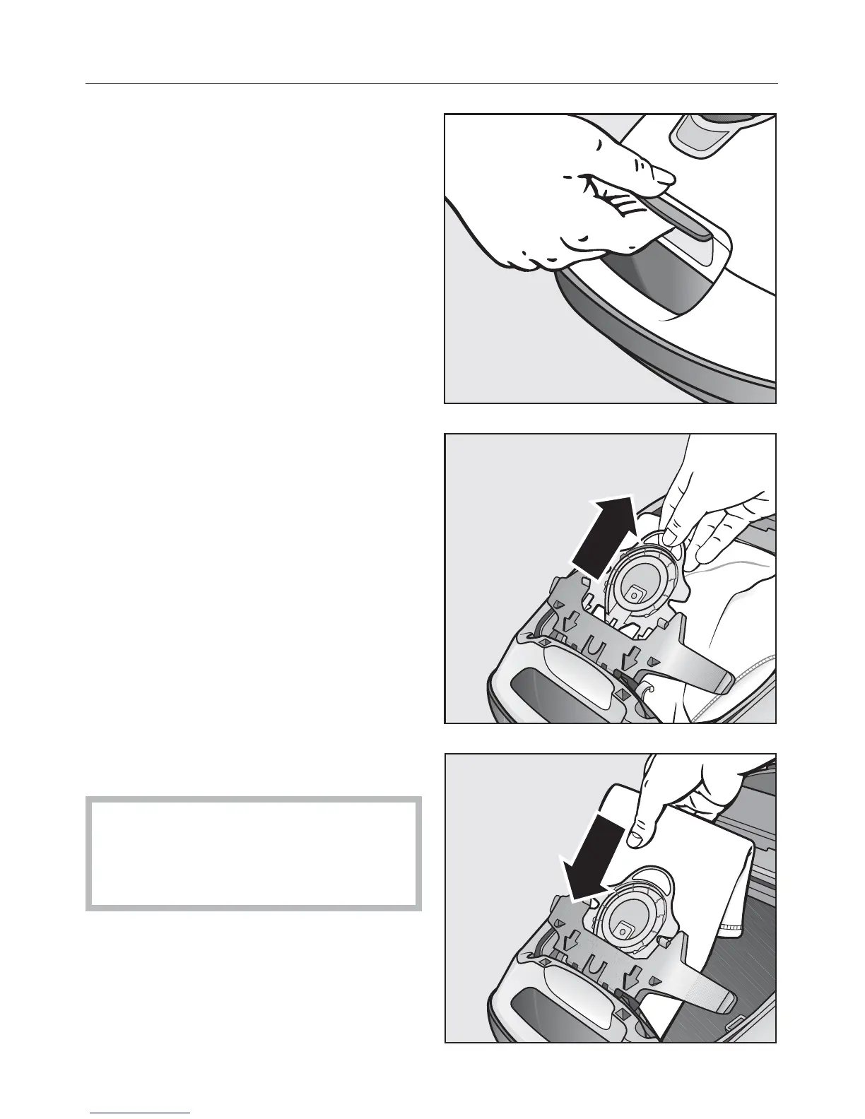 ^ Insert the new filter bag into the blue