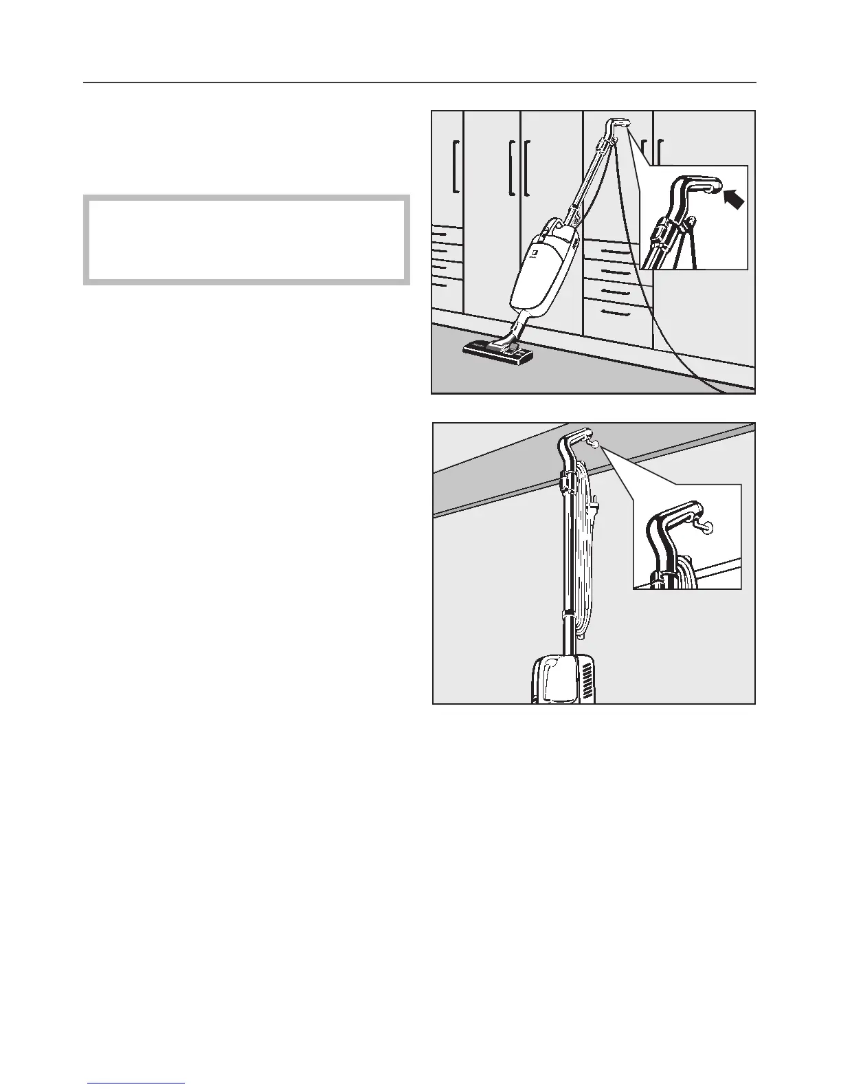 Parking and storing the vacuum cleaner