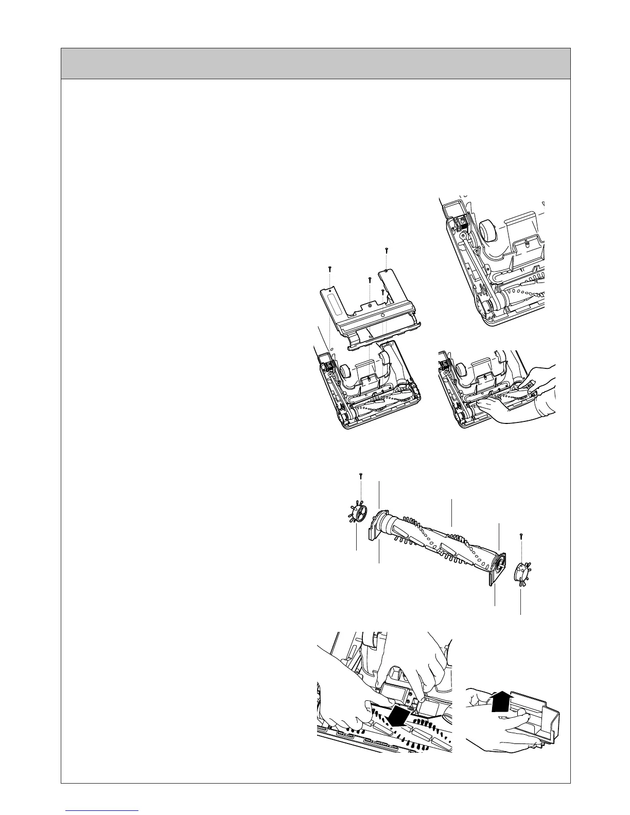 Pour réparer les pièces suivantes, mettre l’aspirateur à la position horizontale. Mettre