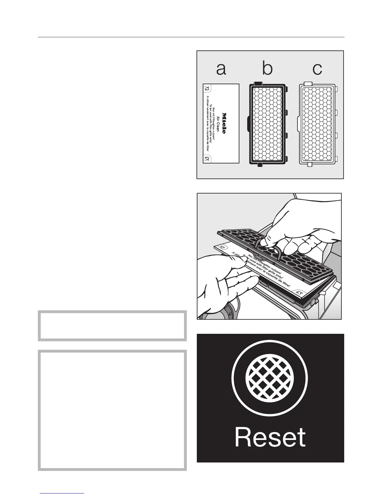Clean filter b or the Active HEPA filter c