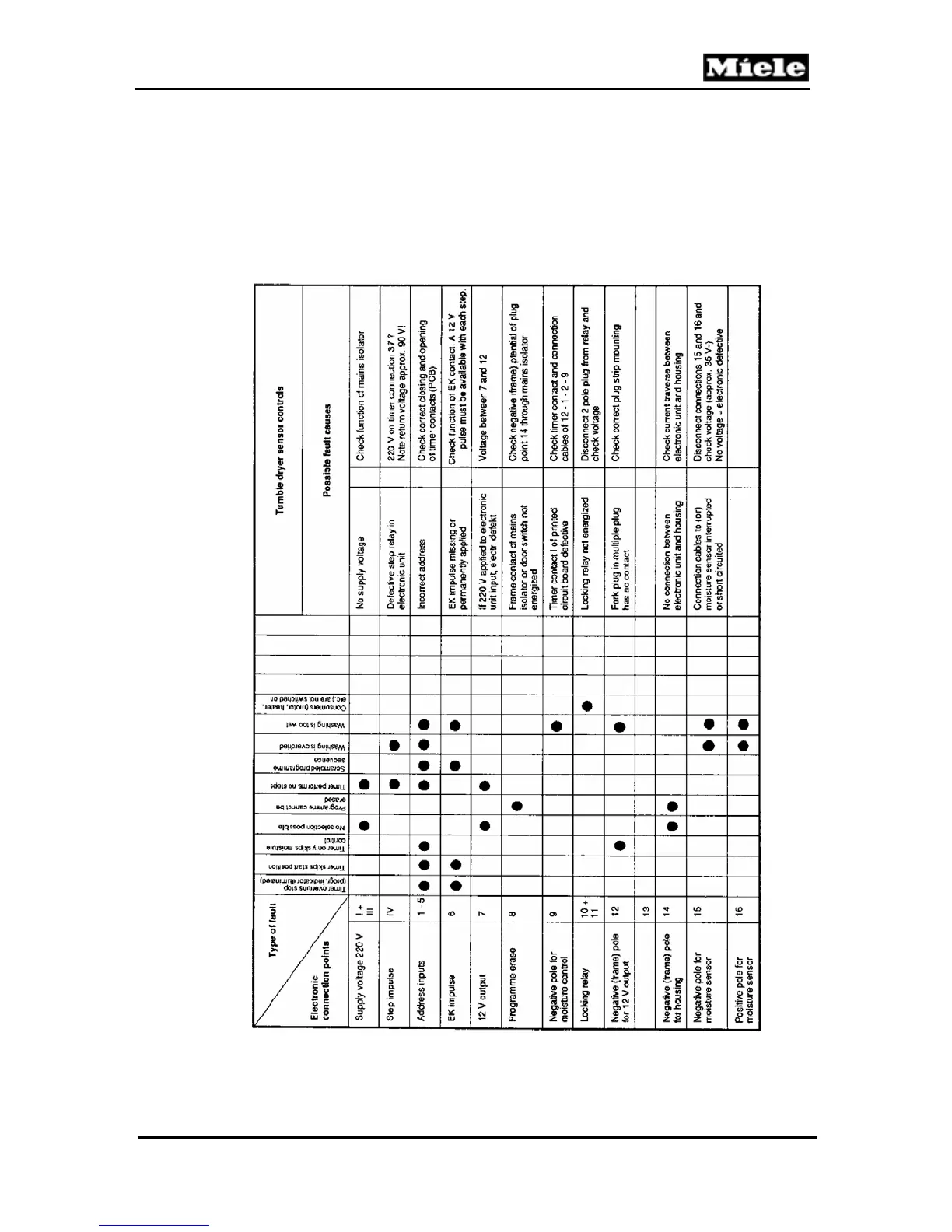 Miele T300 - Fault Diagnosis and Troubleshooting; Sensor Control Checks