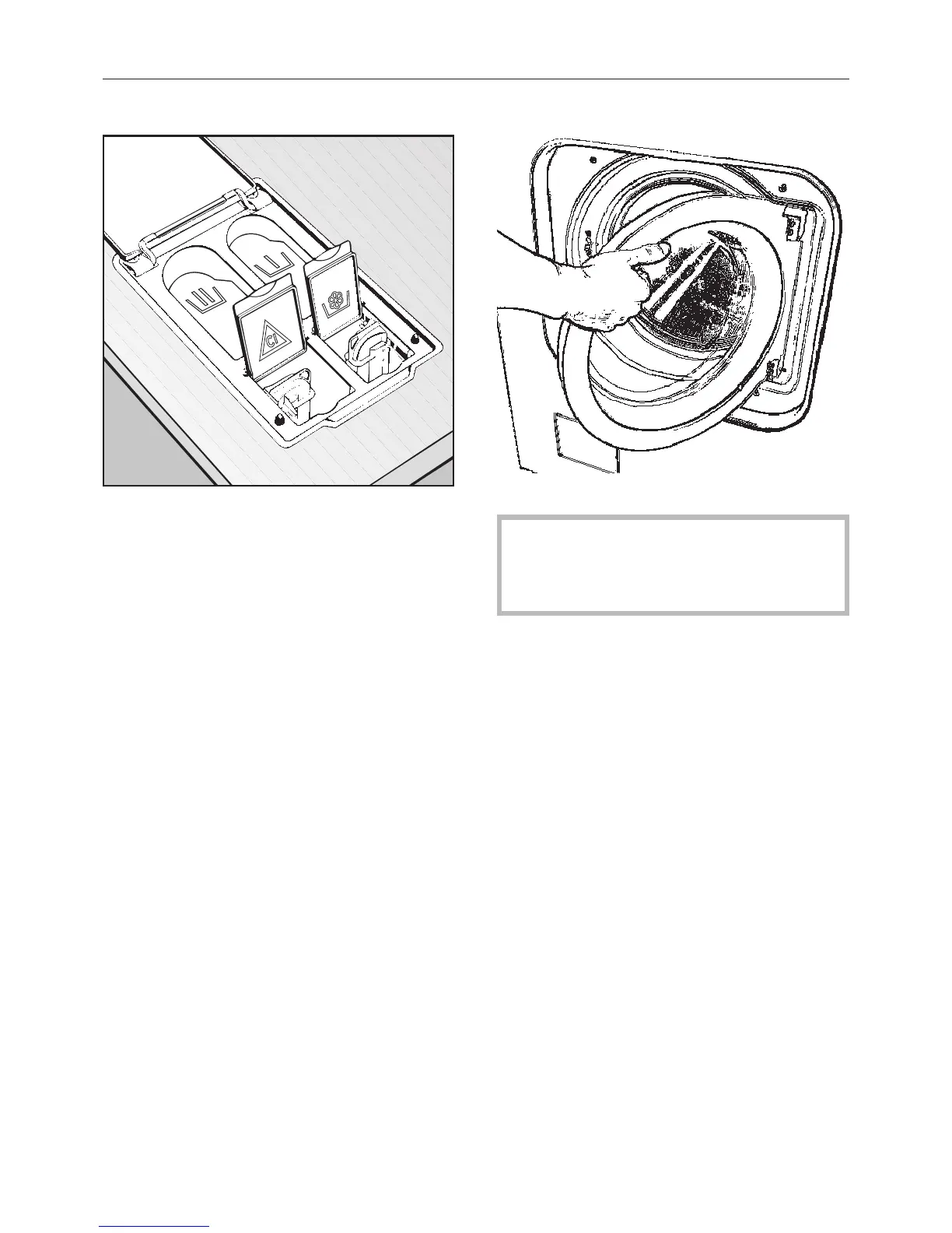 ^ Load the laundry into the drum.