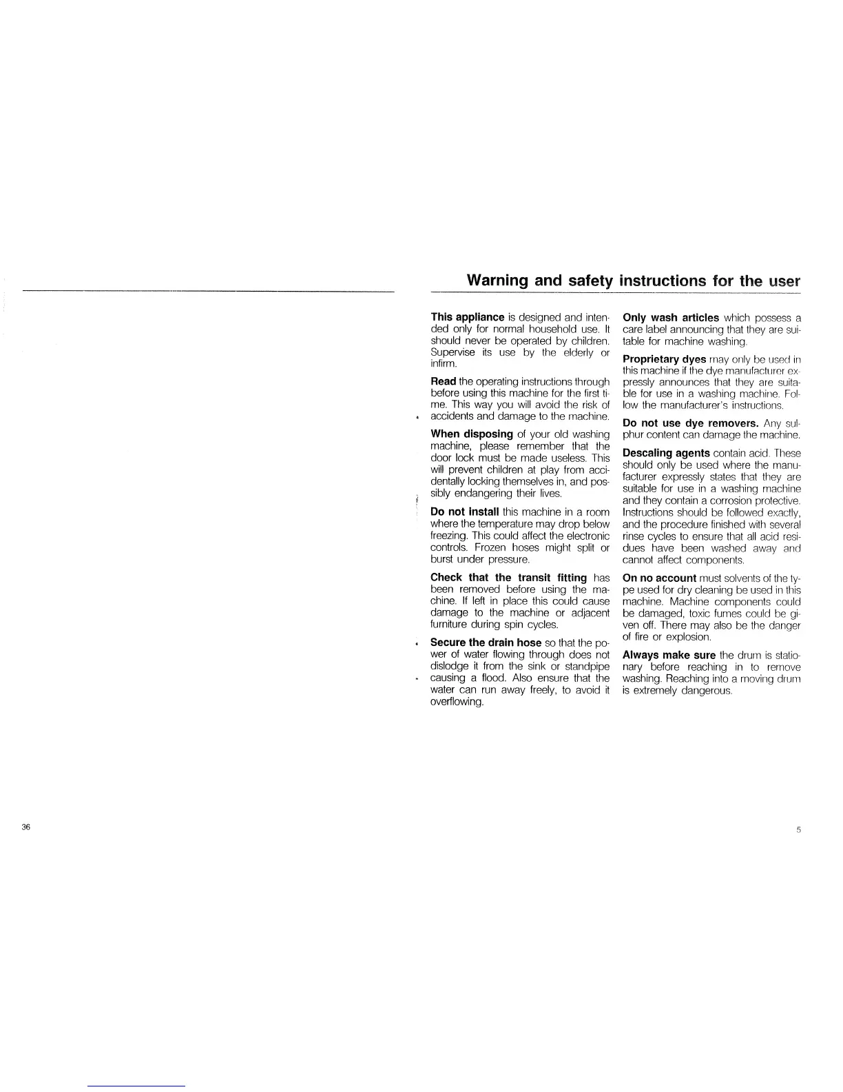 Miele W 698 Hydromatic - User Safety Warnings; General Safety Guidelines