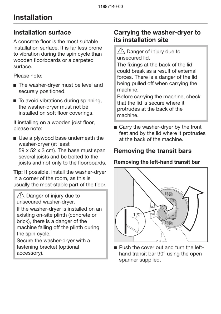 Carry the washer-dryer by the front