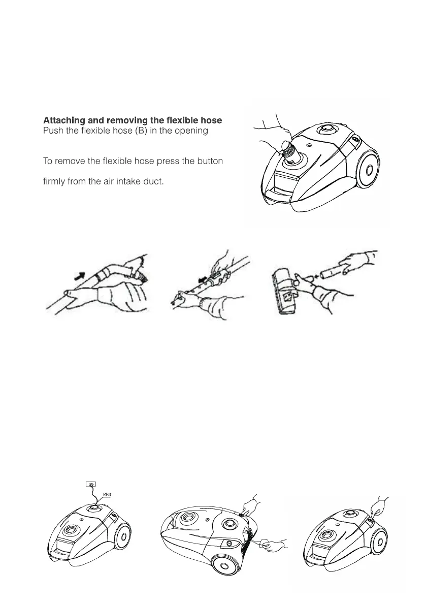 into the power socket. Do not extend the cable beyond the RED mark. To rewind the