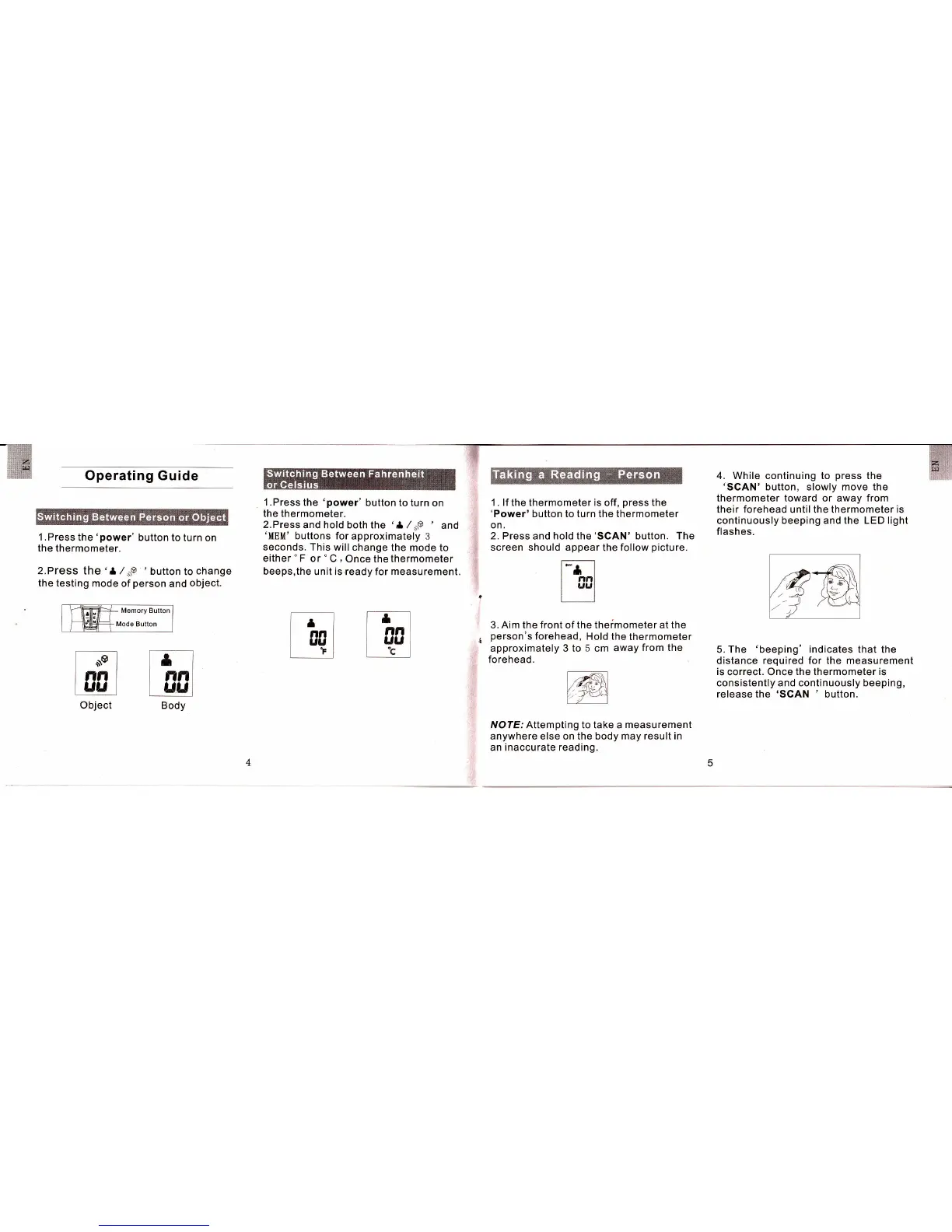 their forehead until the thermometer is
