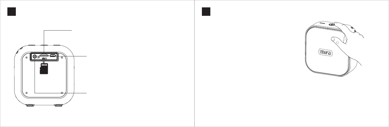 In the powered-on state, insert a Micro-SD card into the slot. It will