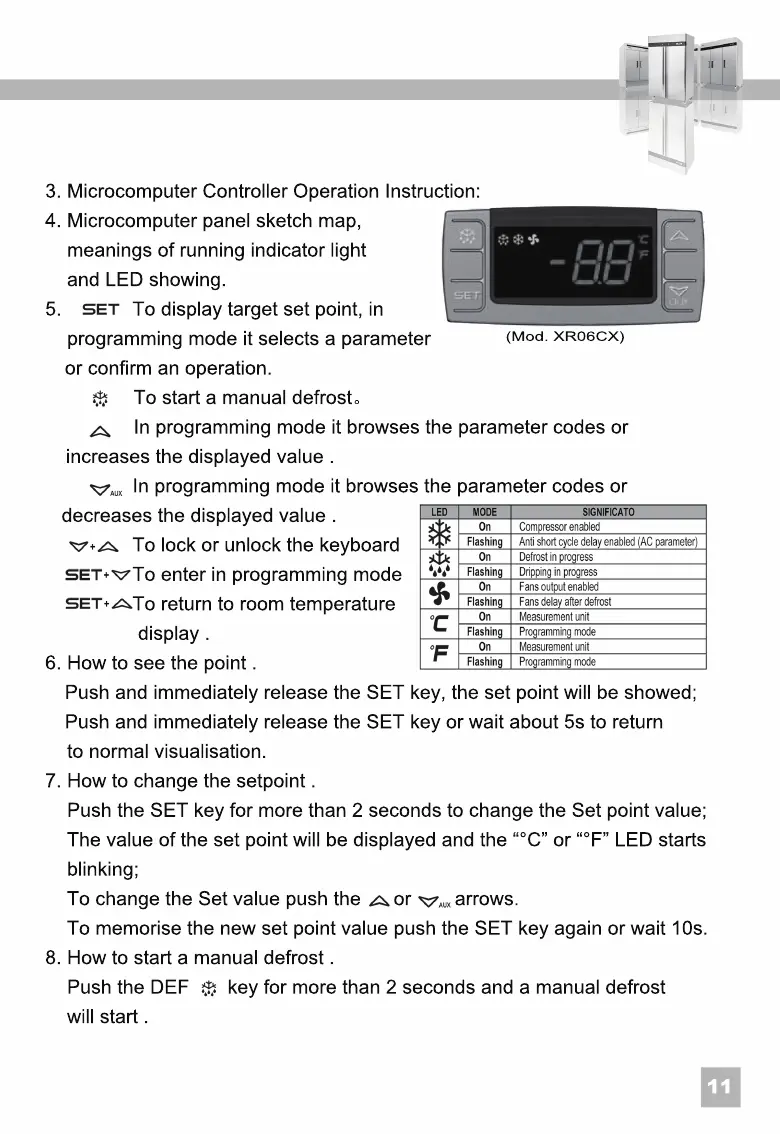 The value of the set point will be displayed and the “°C” or “°F” LED starts