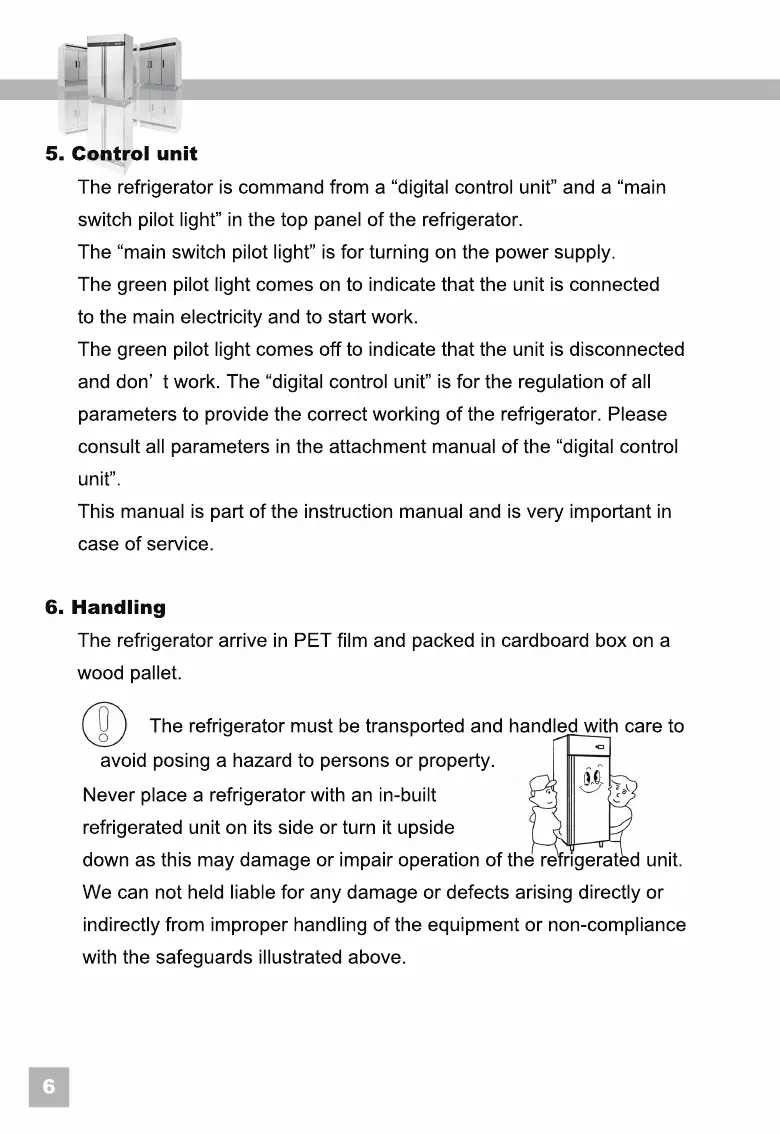 The refrigerator must be transported and handled with care to