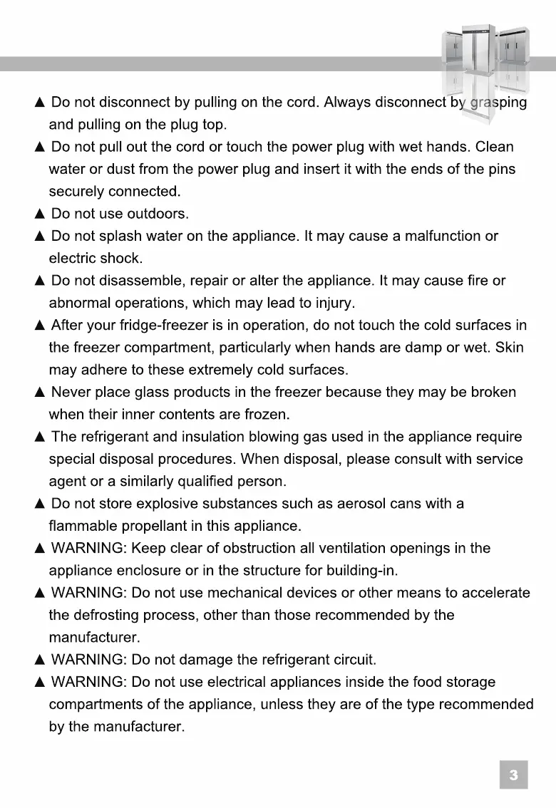 ▲ WARNING: Do not use electrical appliances inside the food storage