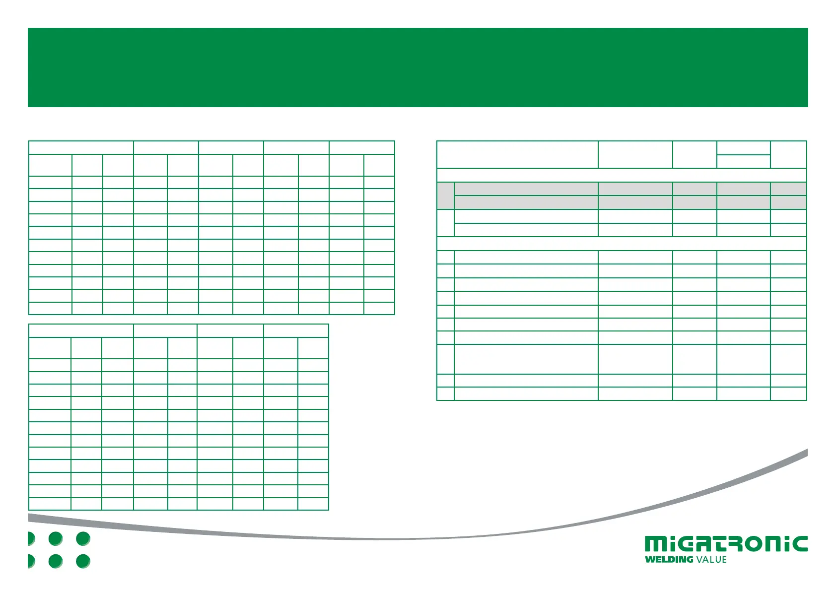 Hitsaustaulukko (asetus arvot) BASIC II – Tehdasasetukset
