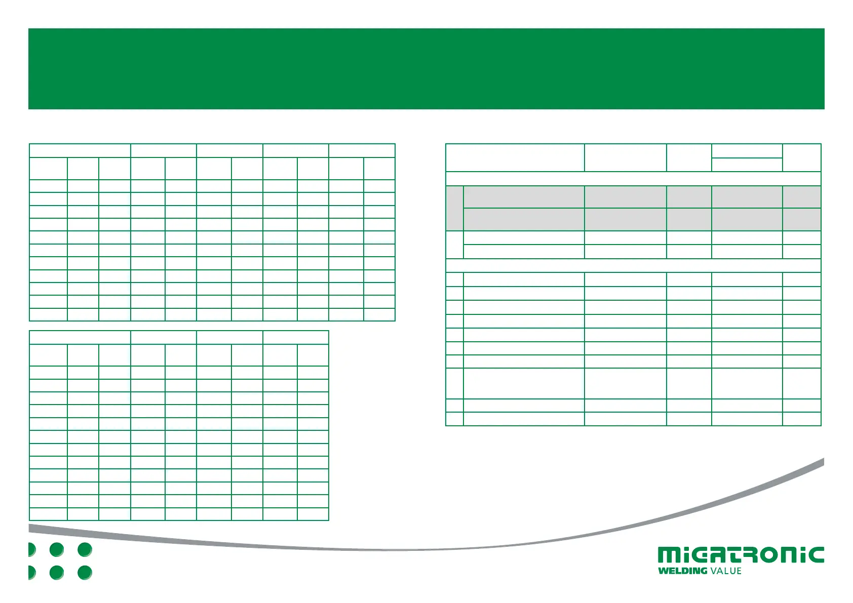 Tabla de soldadura (valores de ajuste) BASIC II - Ajustes de fábrica