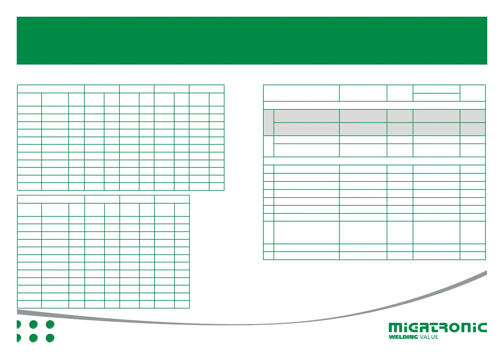 Таблица по сварке для (установленные значения) BASIC II - Заводские настройки