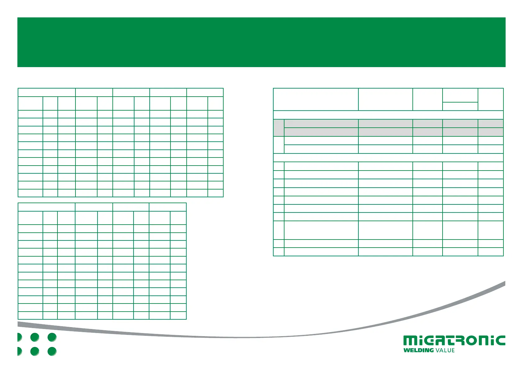 Tabella parametri di saldatura Regolazioni di fabbrica BASIC II
