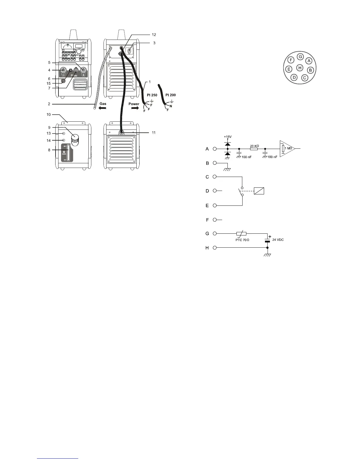 A távszabályzó csatlakozóval (15) szerelt PI gépek