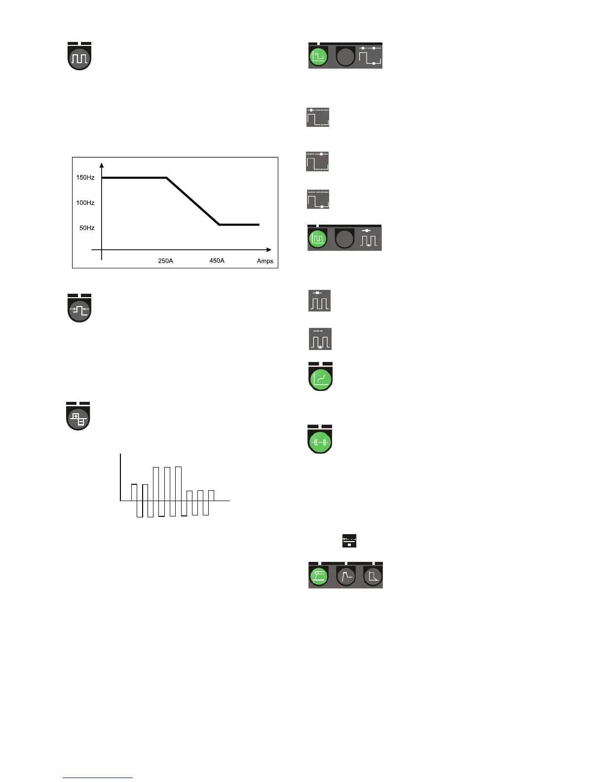 MMA-svetsning kan ställas in från 25 till 100 Hz. Det
