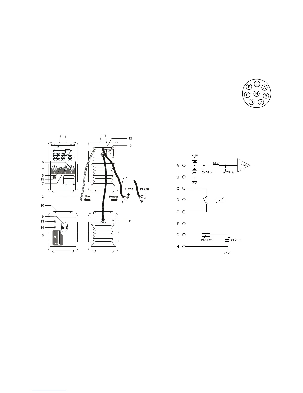 G: Voeding +24VDC. Kortsluit beschermd met PTC