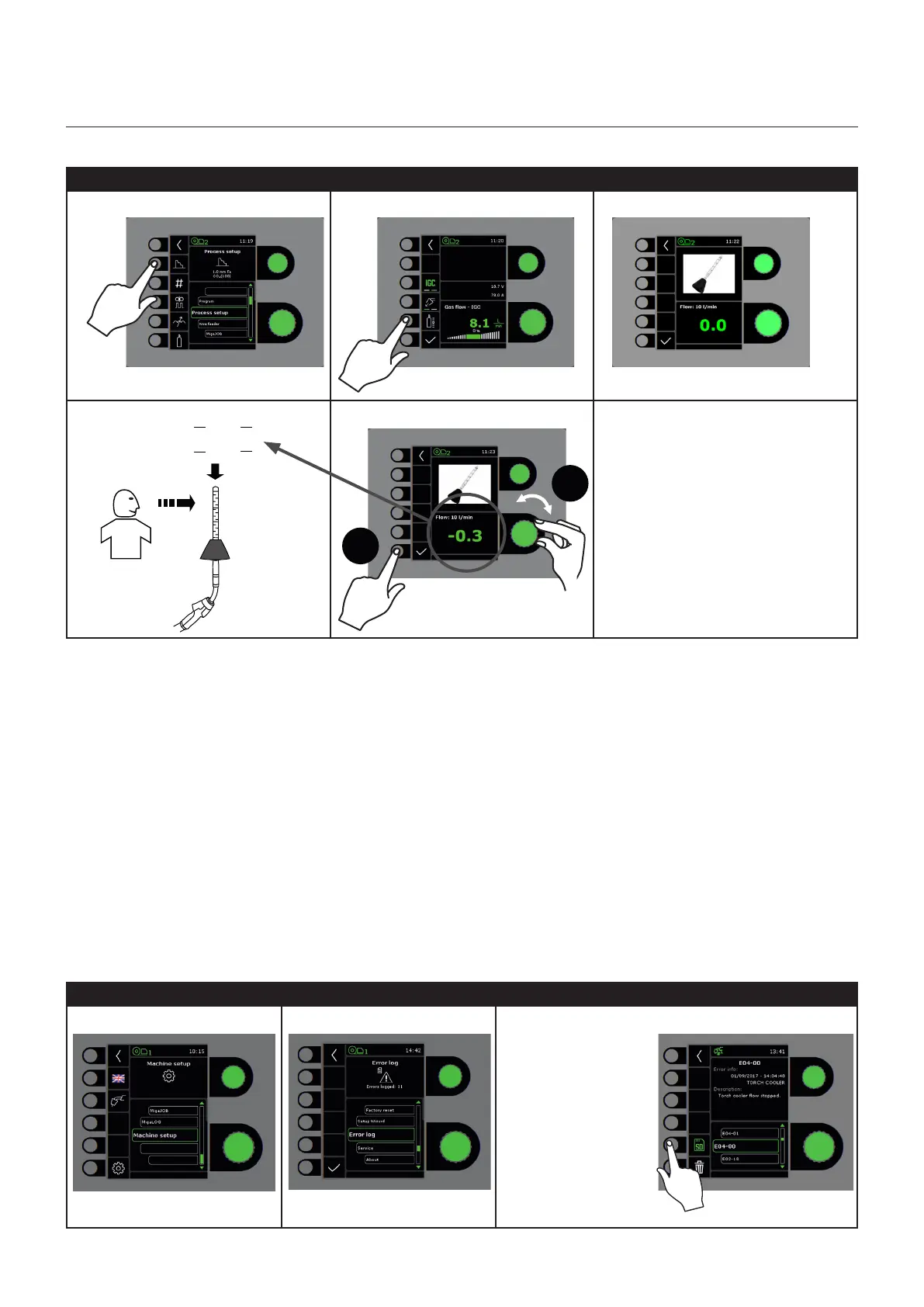 27 l/min. Kaasuvirhe saadaan pois toiminnasta säätämällä kaasunvirtaus manuaalisesti arvoon 27 l/min.