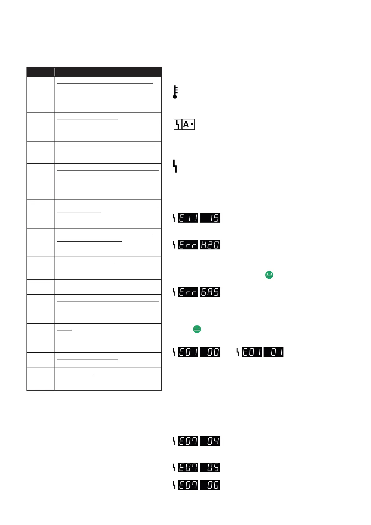 Samtidigt visas felkoden i displayen.
