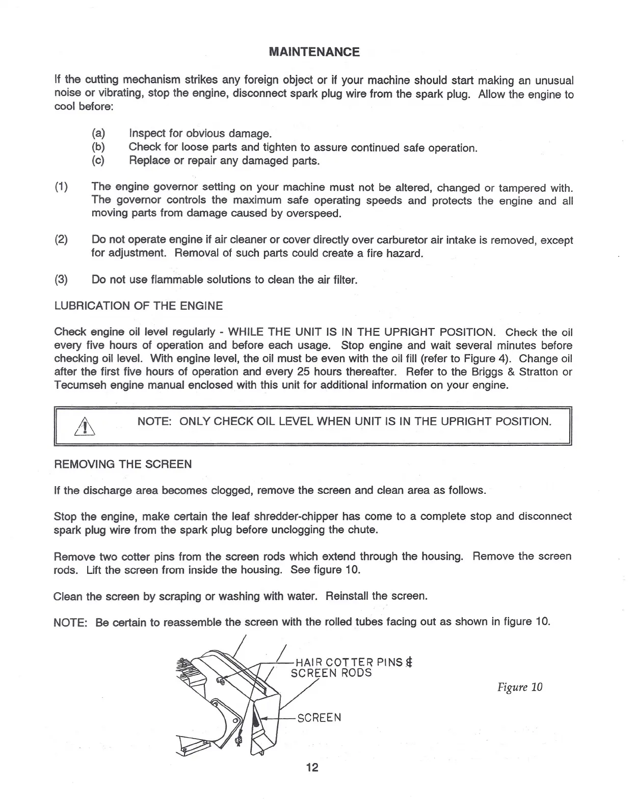 Mighty Mac LSC508 - MAINTENANCE; General Maintenance Checks; LUBRICATION OF THE ENGINE