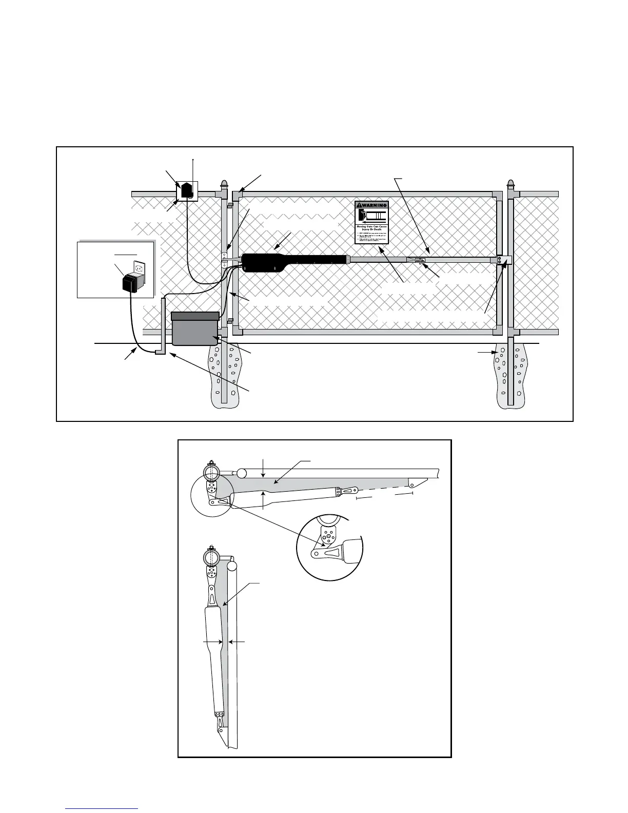 The diagram shown below is an example of a pull-to-open installation on a chain link fence and single gate.