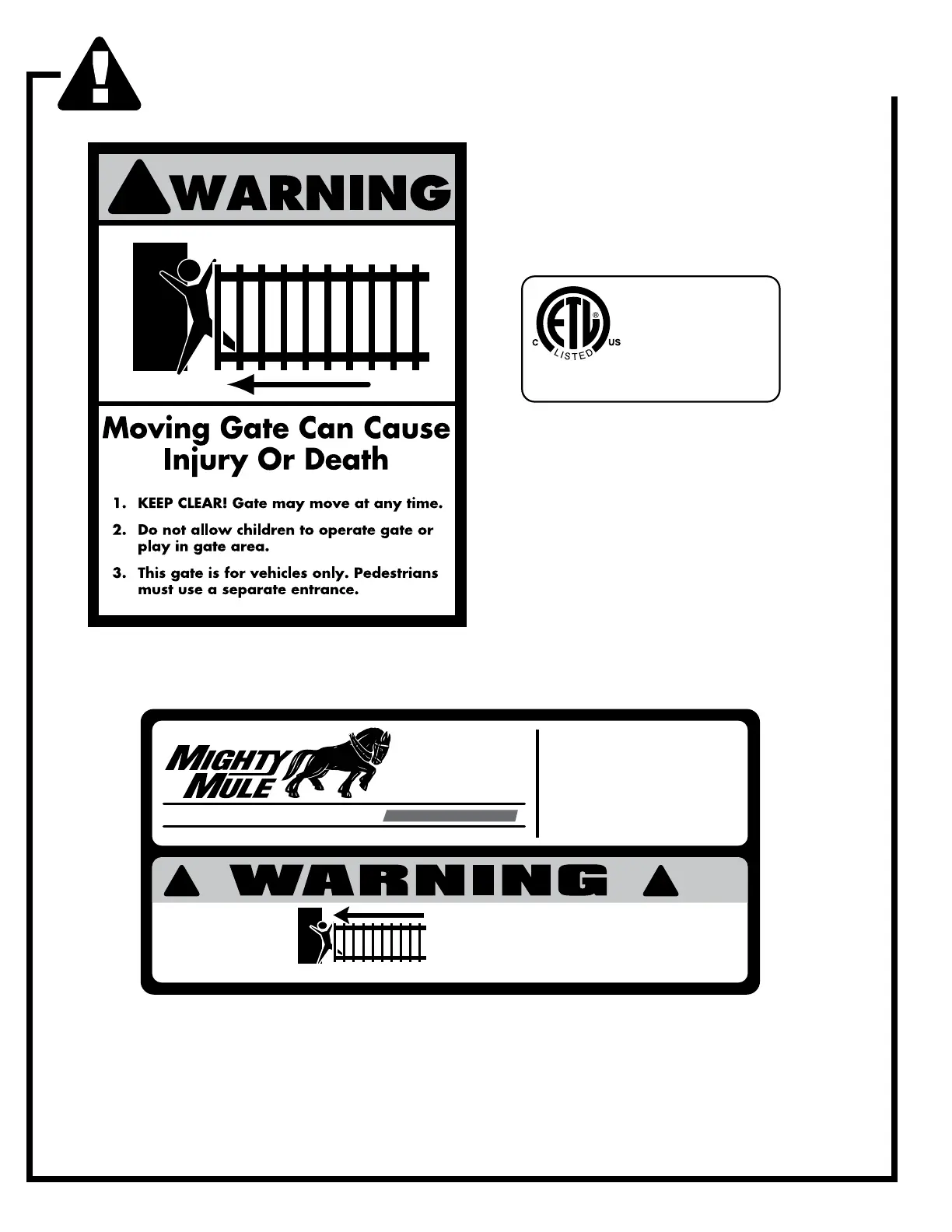 If any of these signs or warning decals become damaged, illegible or missing, replace them immediately.
