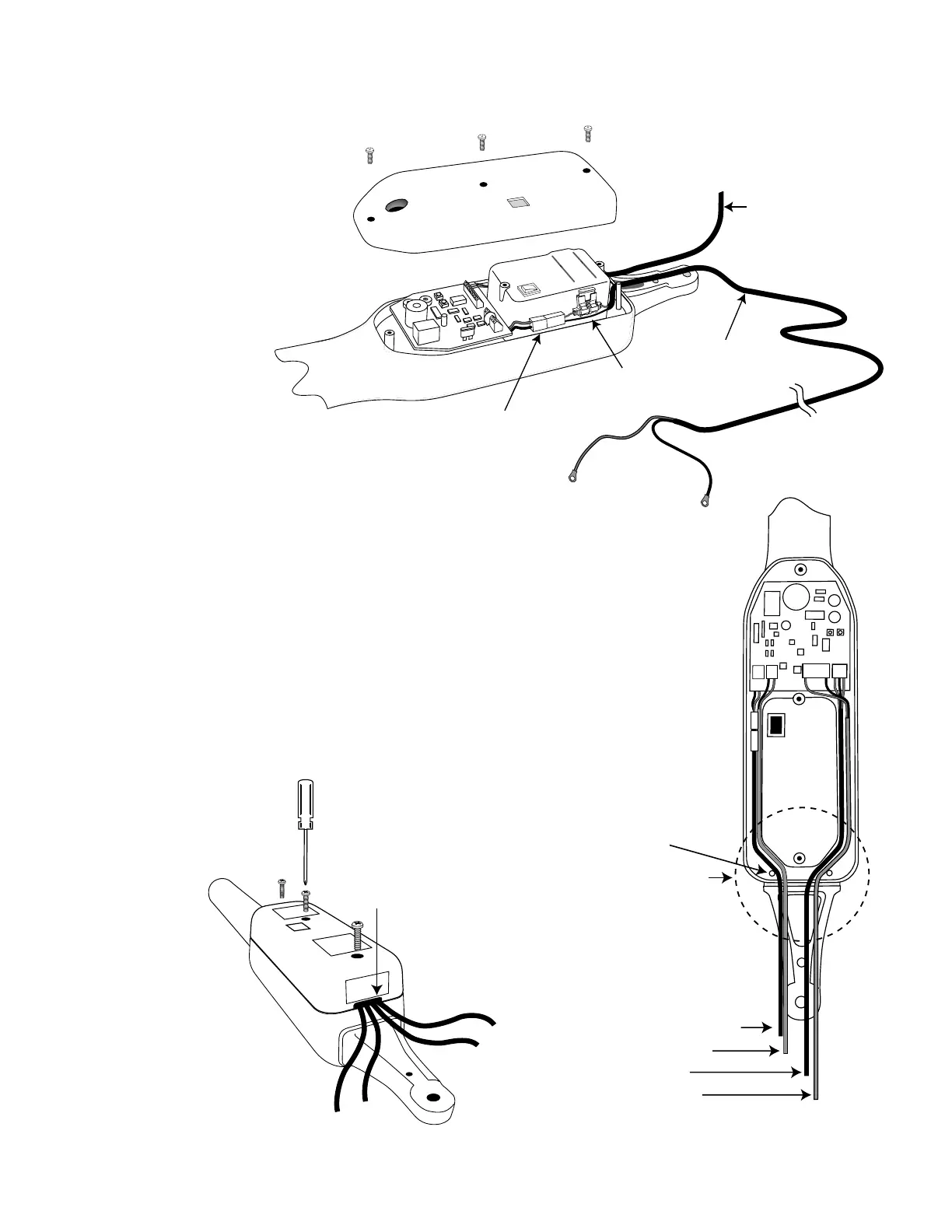 sides of the opener and out the strain relief slot in the back of the opener.