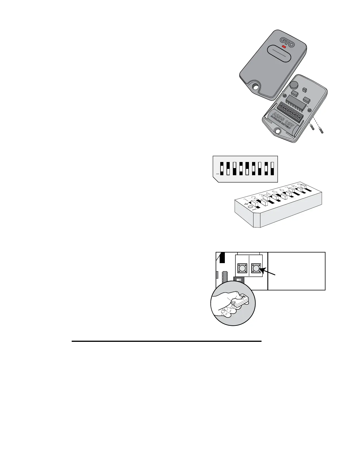 Set the transmitter DIP switches using a small screwdriver. There are nine