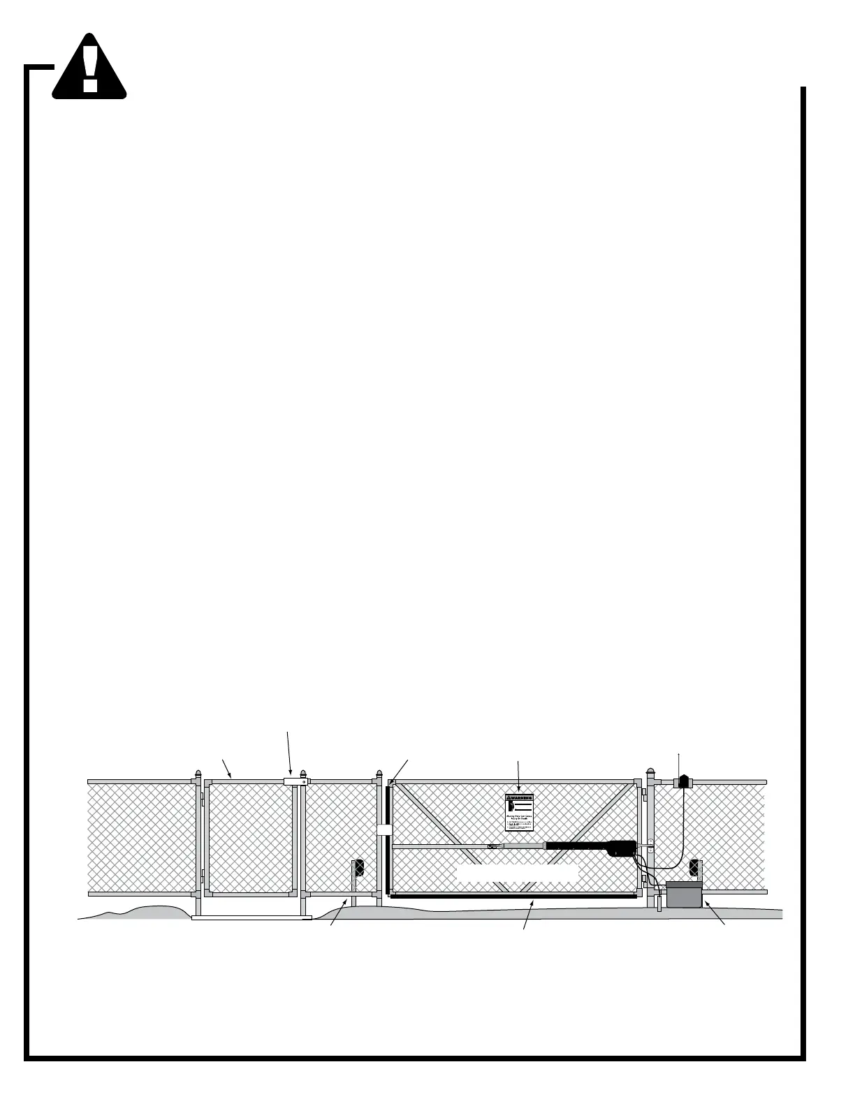 The warning signs included must be installed on both sides of each gate. Furthermore, a walk-through gate must be