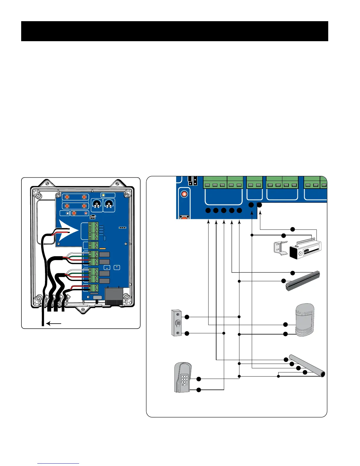 Turn control box OFF before connecting safety device wires to the control board. (Unplugging the transformer does not