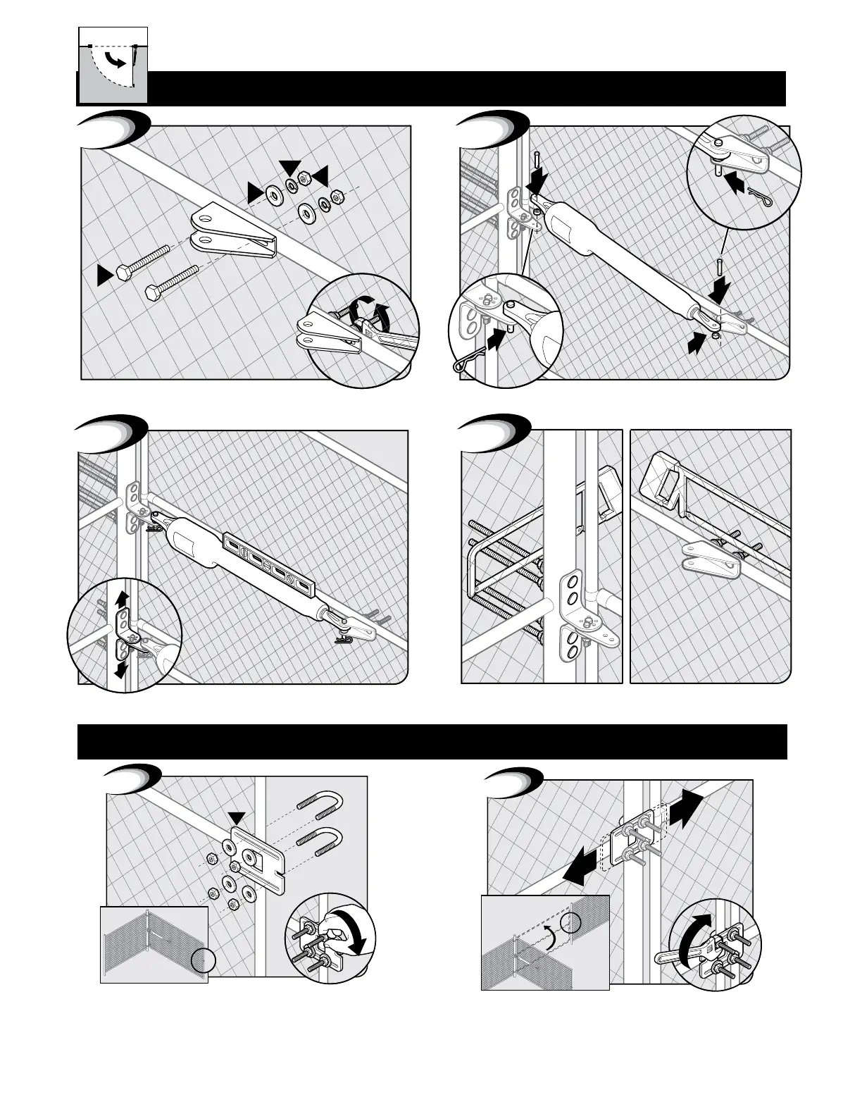 Attach and secure opener assembly to brackets.Attach gate bracket assembly to gate cross support.