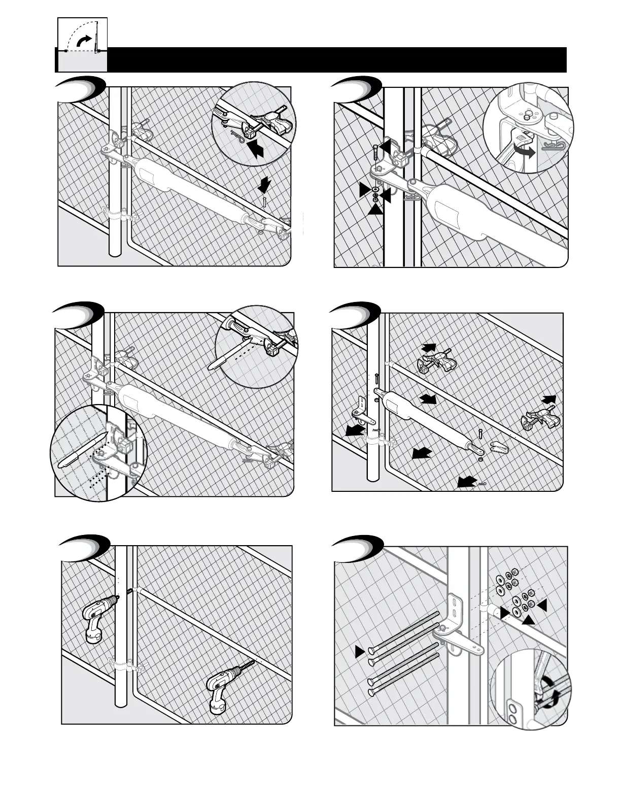CLOSE gate and re-attach opener with clevis pin. Check