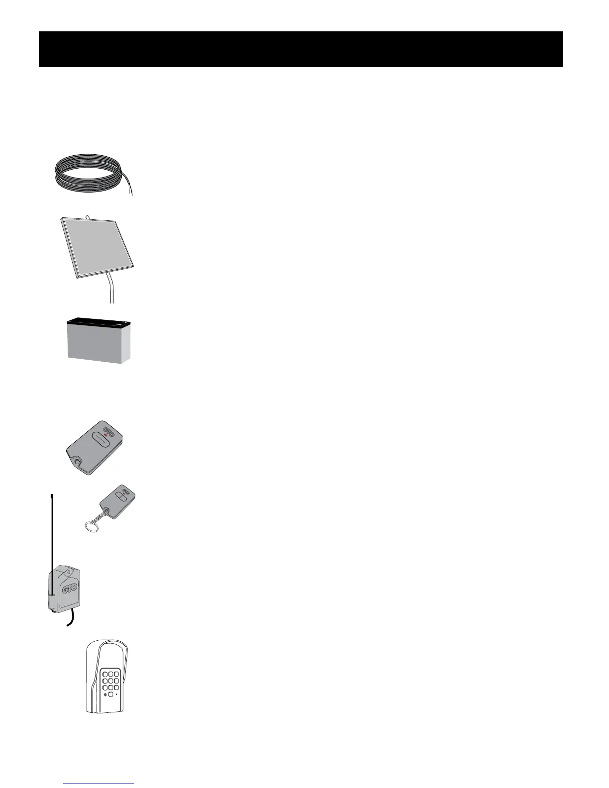 transformer, solar panel or wired accessories to the system’s control board. This specially