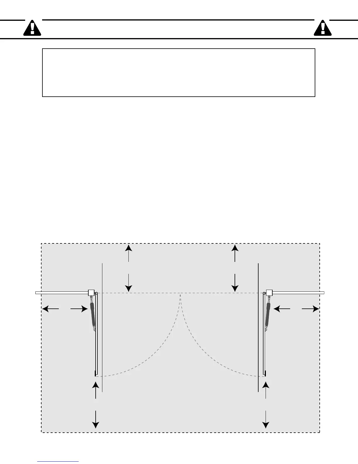 any moving part of the gate (see diagram below). Never install any control device where a user will be tempted to
