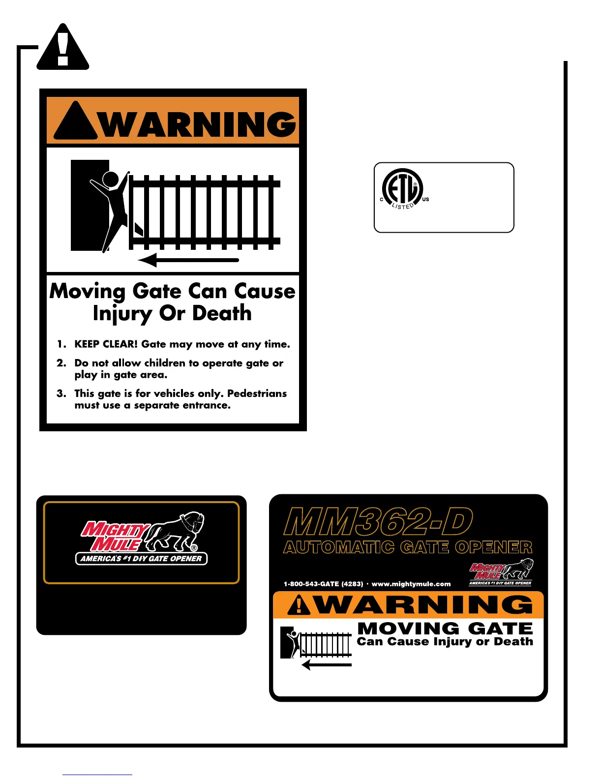 viii Mighty Mule 362-D Installation Instructions rev 12-14-15