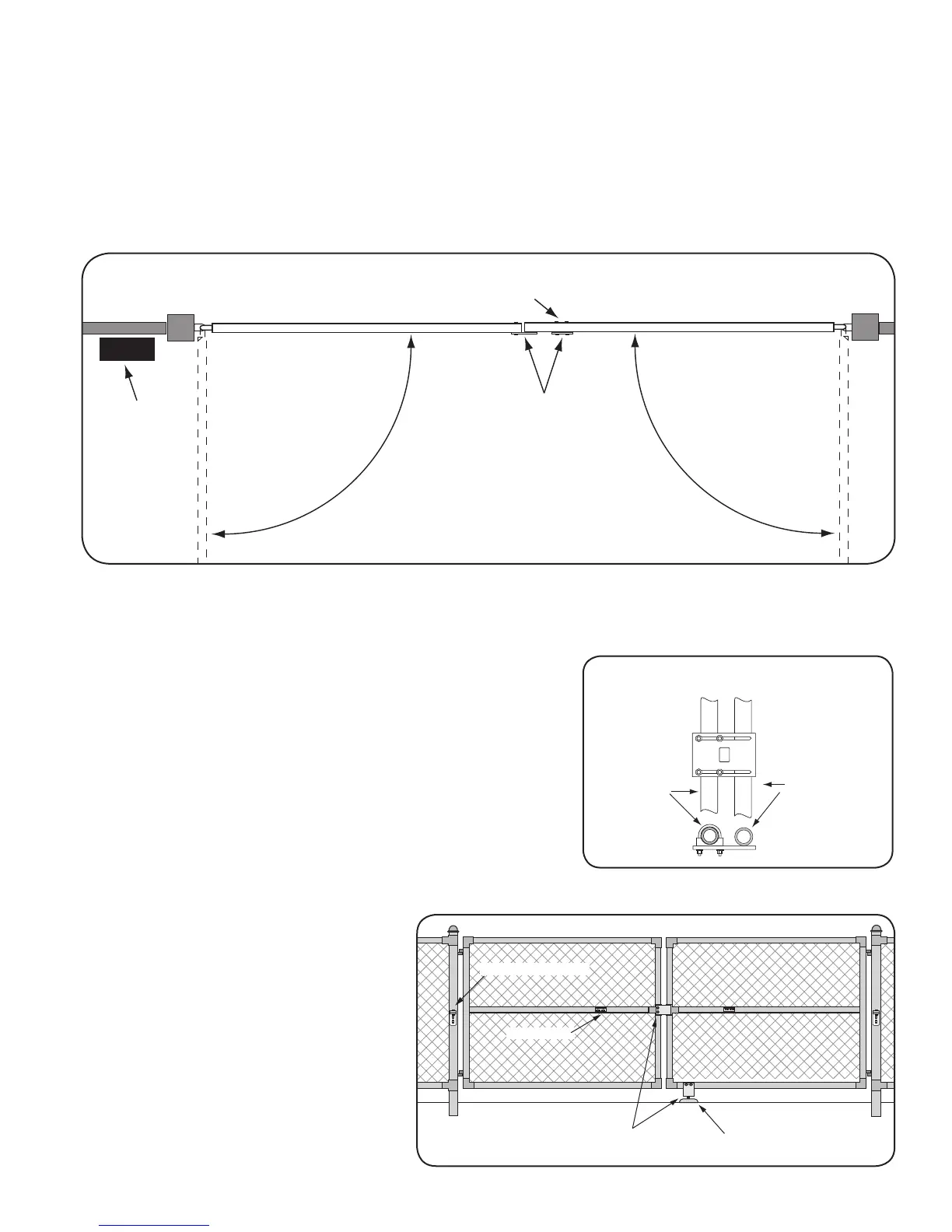 For Pull-to-Open systems, install the closed position stop plates on the inside of the gates.