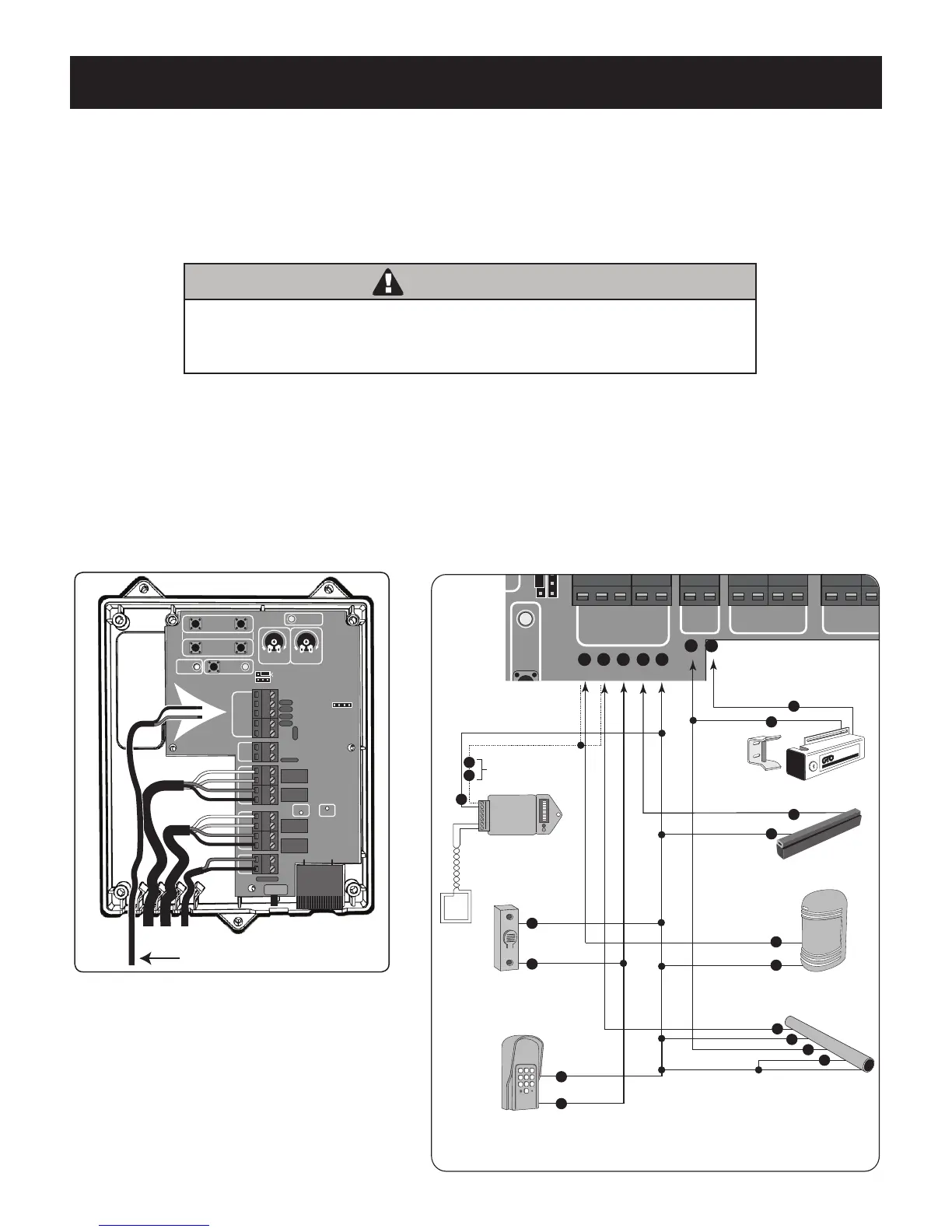 Turn control box OFF before connecting safety device wires to the control board. (Unplugging the transformer does not