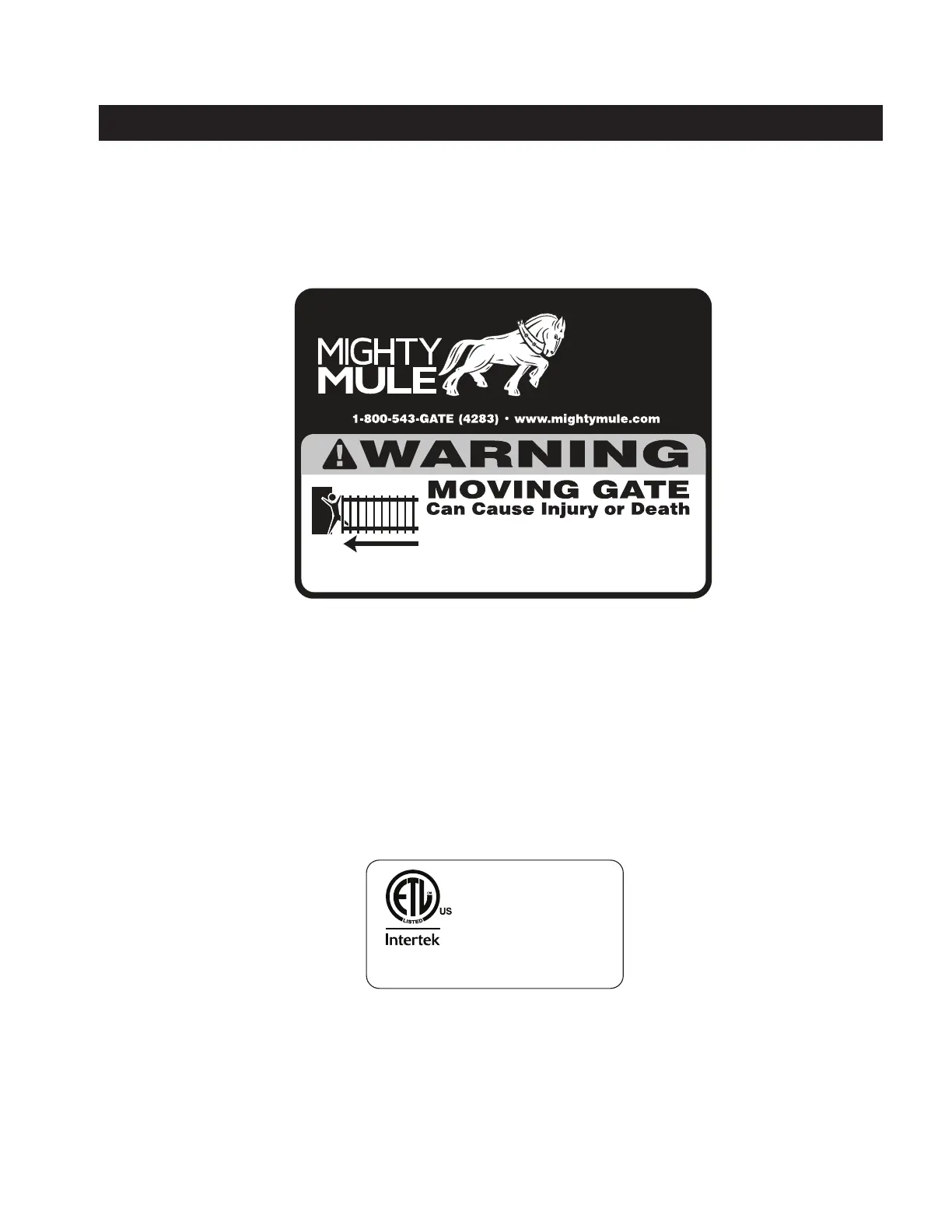 Frequency: 0Hz; Power: 25W • Class I Vehicular Swing Gate Operator