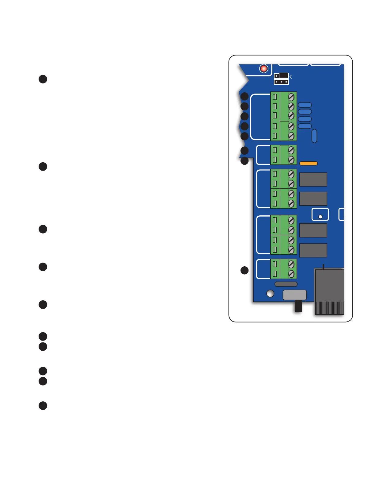 • Input terminals for transformer or solar panel.