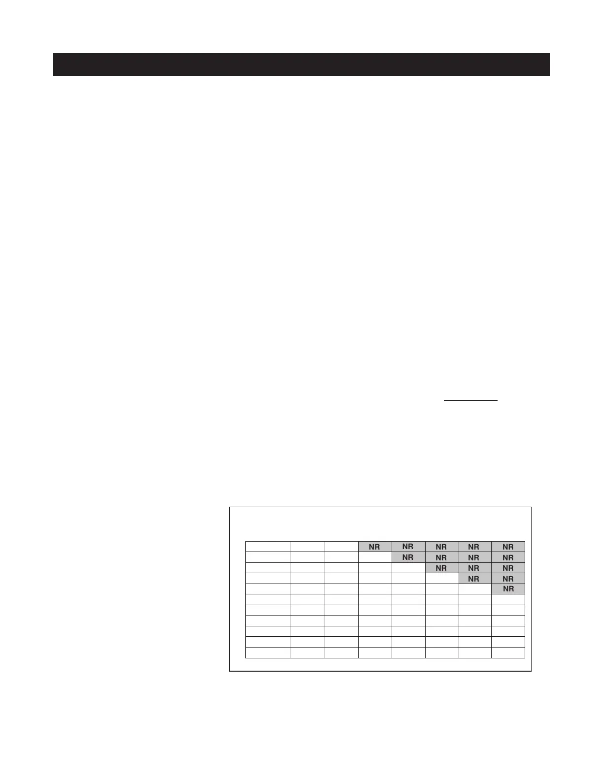 NOTE: “NR” indicates this size