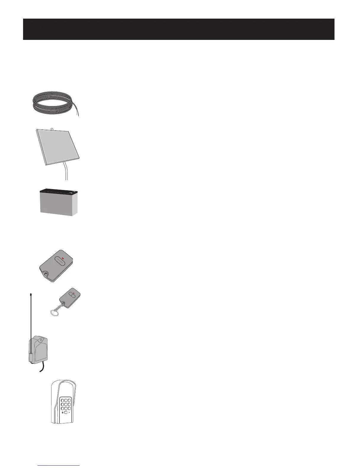 transformer, solar panel or wired accessories to the system’s control board. This specially
