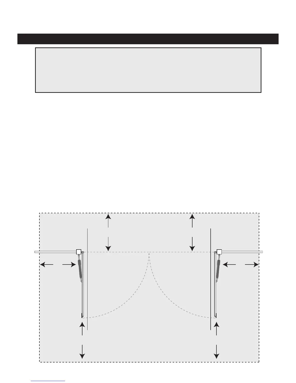Zone 4 – the space between the gate in the open position and any object such as a wall, fence, tree, etc.