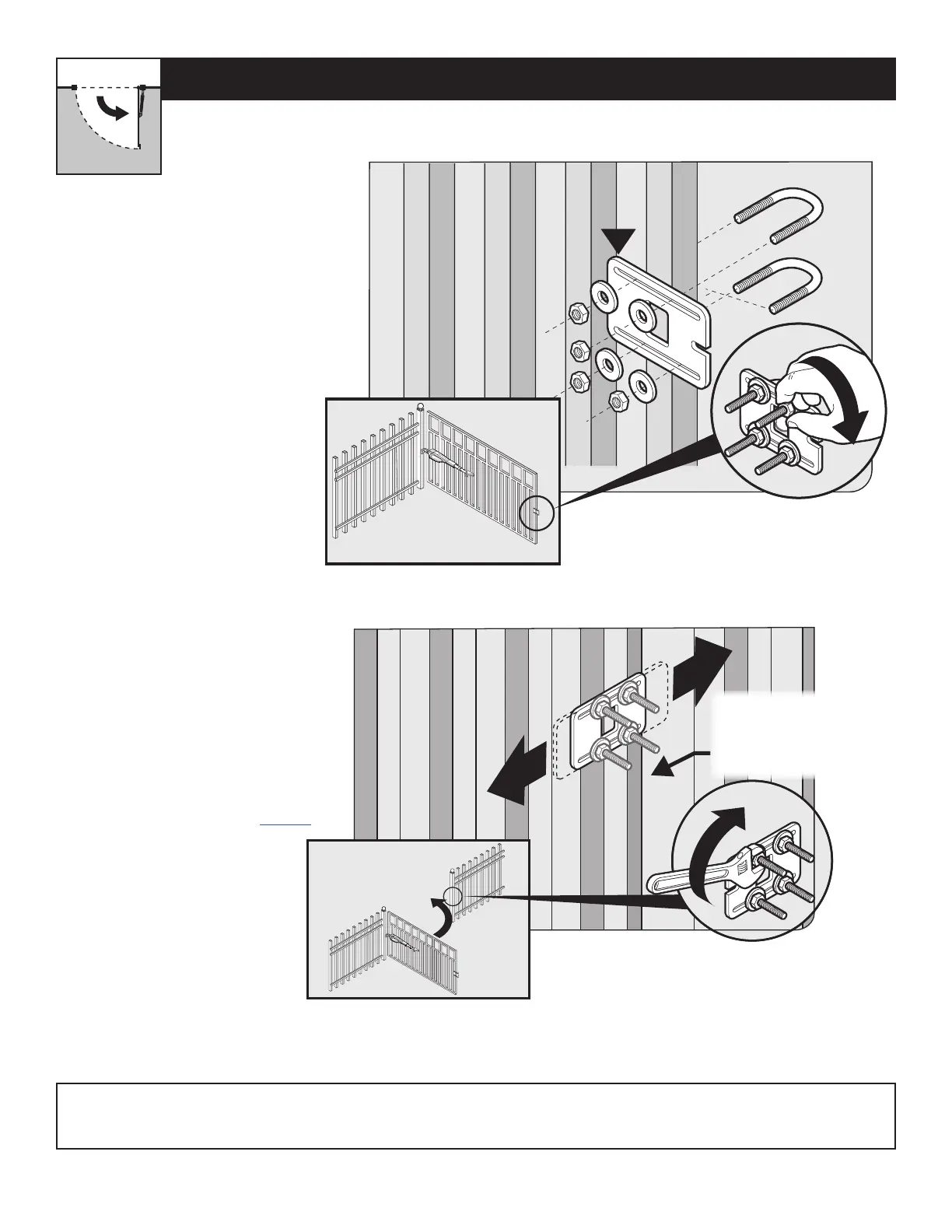 ● With the gate fully open, install