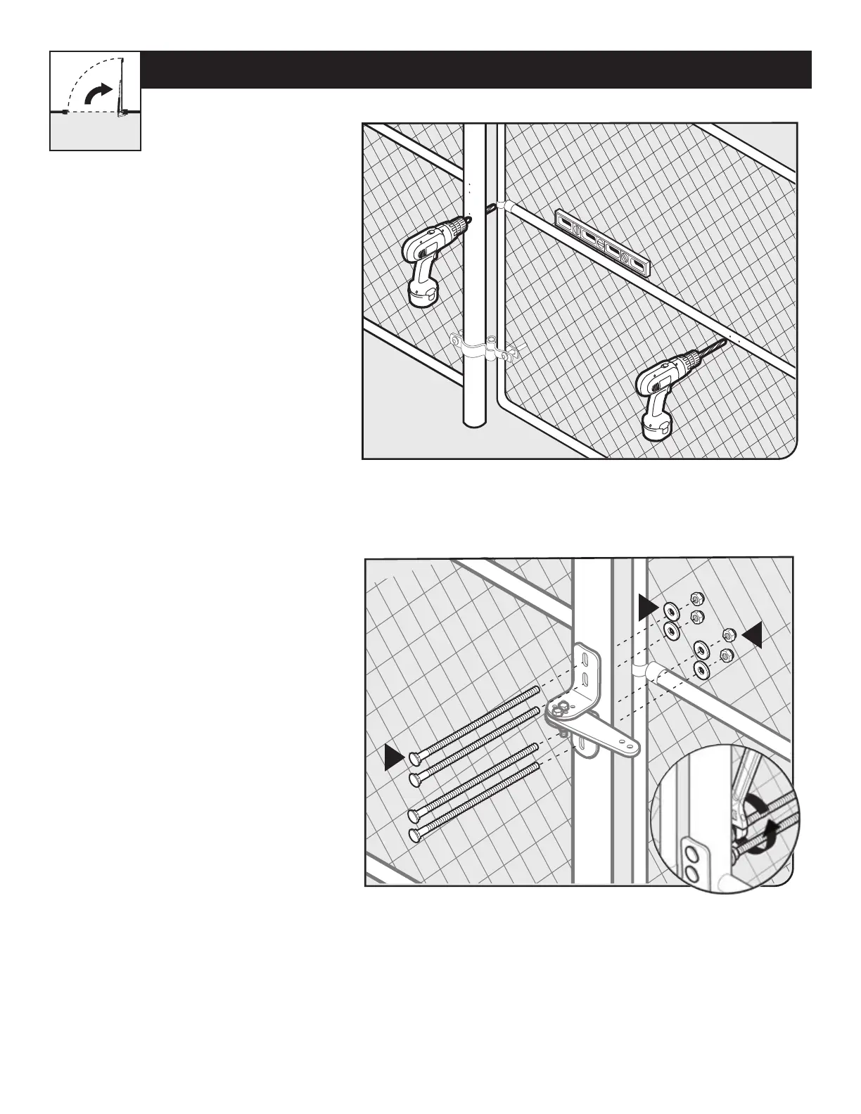 ● Secure the gate post bracket subassembly