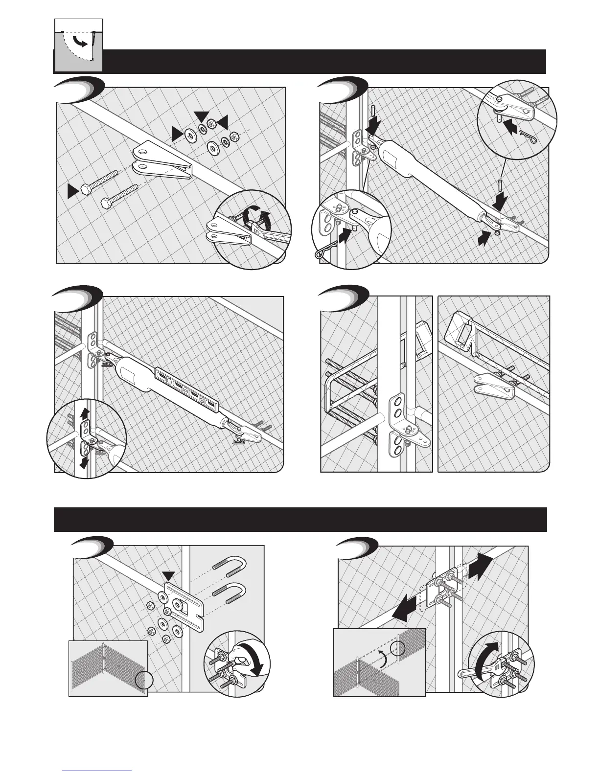 Attach and secure opener assembly to brackets.Attach gate bracket assembly to gate cross support.
