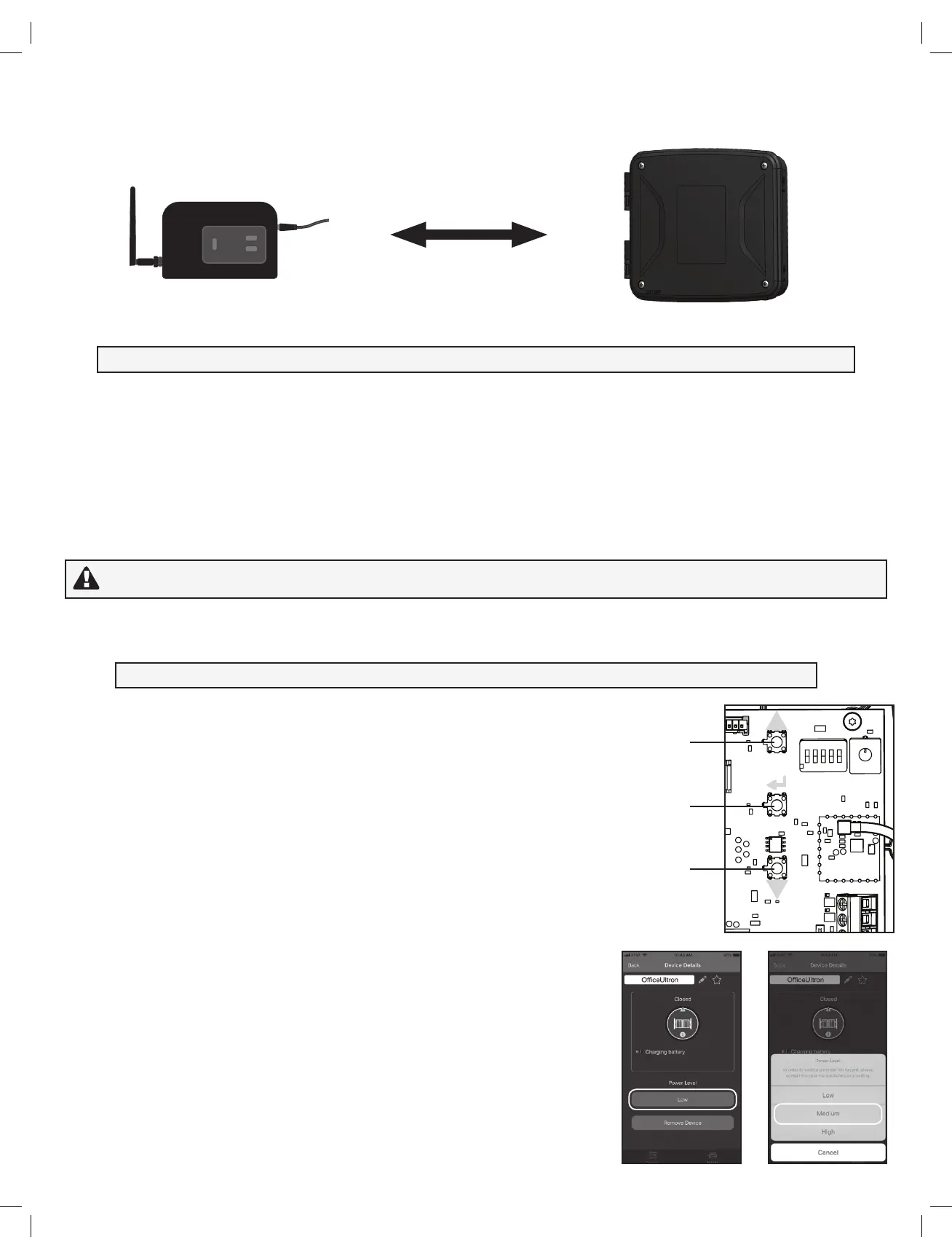 CAUTION: Do not set the power level setting to “Medium” or “High” if your Bridge Module and the Radio Module are within 25 ft of each other.