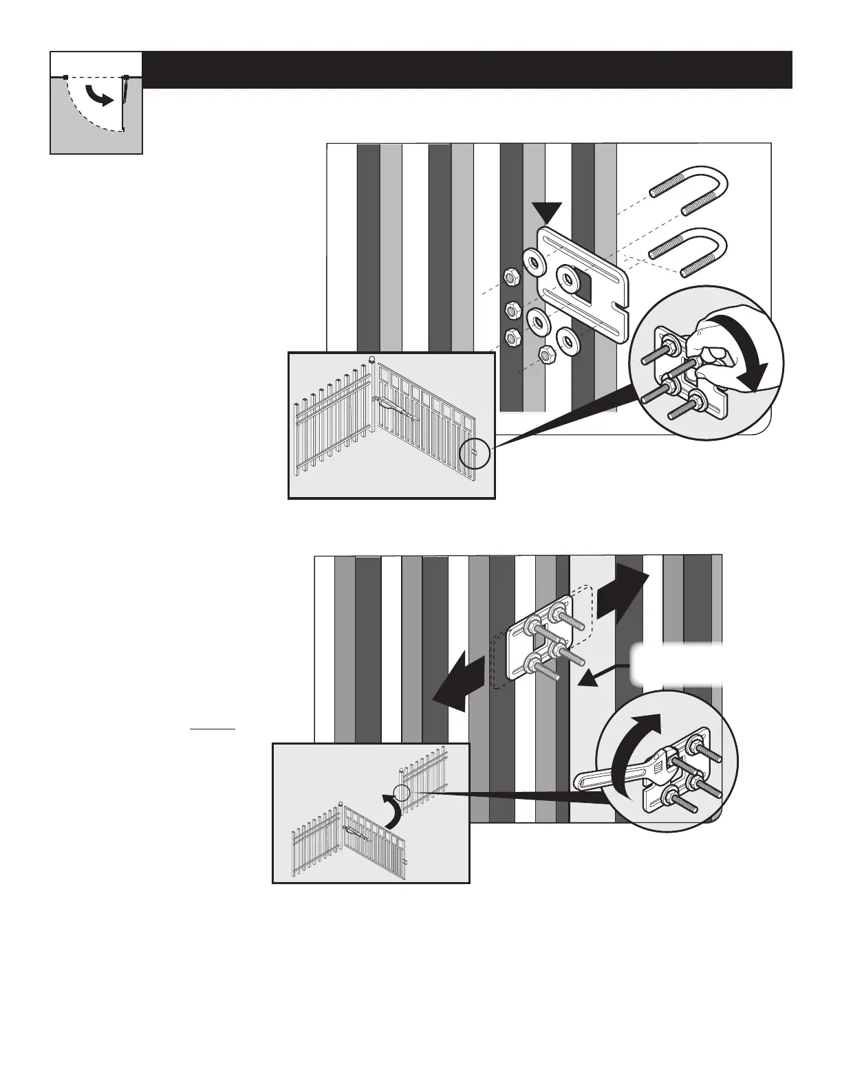 ● With the gate fully open, install