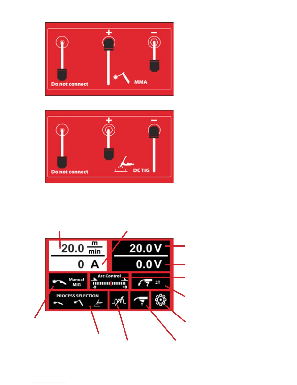 3. Welding display: Shows all selected parameters.