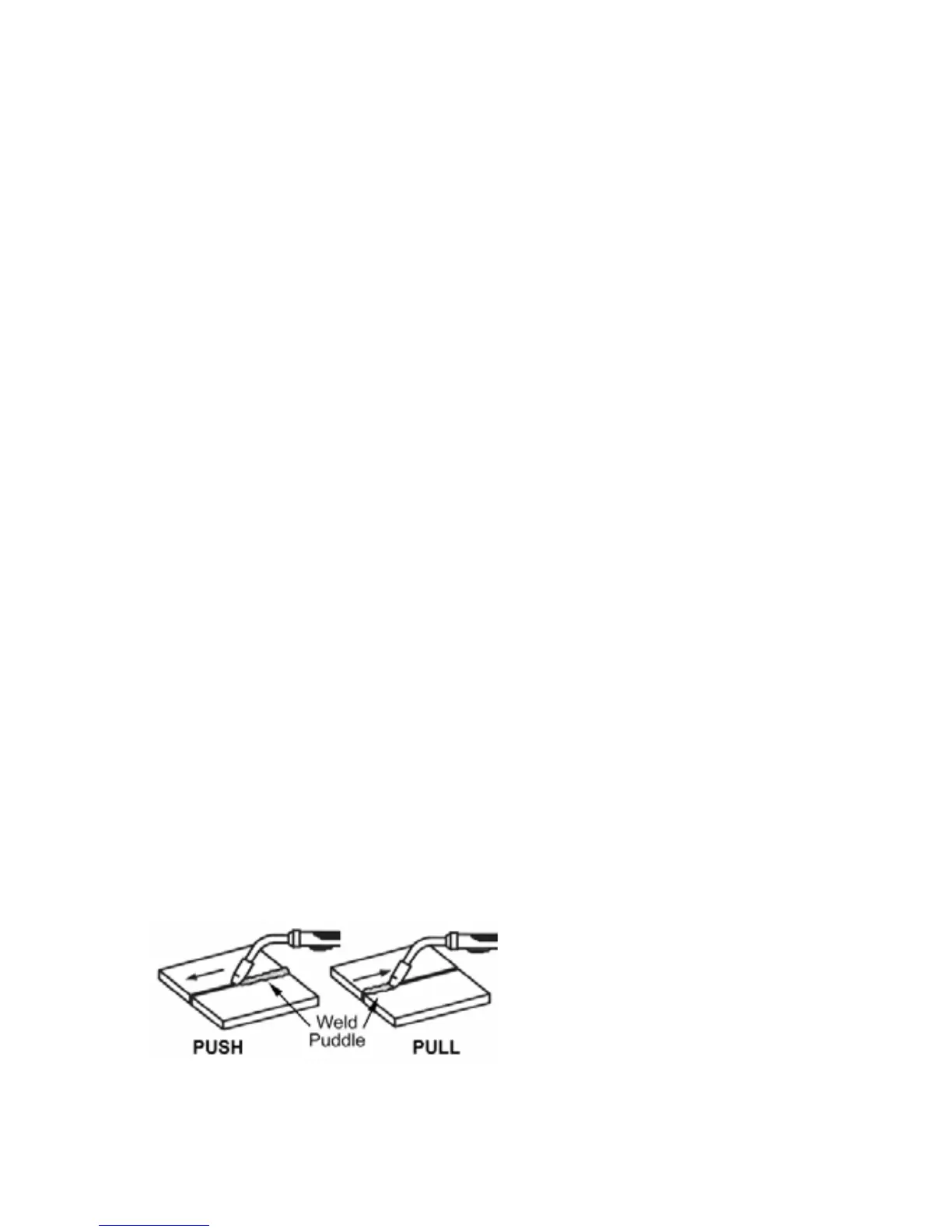weld puddle. The torch is either PUSHED into the weld puddle or PULLED away from the